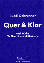 Querflöte und Klarinette spielen miteinander, stellen sich quer zueinander - oder spielen unisono in ungetrübter Klarheit. Zwischen diesen Extremen gibt es eine Vielfalt von Beziehungsmöglichkeiten. Im ersten Stück lockt die Flöte mit einer anmutig und ausdrucksvoll schwingenden Melodie die Klarinette nach und nach aus ihrem gleichförmigen Hintergrunddasein, bis sie zu einer gleichwertigen Mitspielerin wird. Im zweiten Stück wird die Nähe der zwei Stimmen genossen und erlitten. Im dritten Stück laufen die Stimmen einander davon, überholen einander und treffen sich im oben erwähnten Unisono, um dann am Schluss - ja was denn!? - Ein Ausrufezeichen/Fragezeichen zu setzen?... Sich mit Schlamm zu bewerfen? - Wenn wir lieber das Bildhafte haben, könnte man das erste Stück vielleicht mit «Idylle am See» betiteln? Das zweite mit «Zerfliessender Zartbitterschokolade» und das dritte mit... Oder vielleicht ist jetzt auch einfach Zeit, dass die Worte der Musik Platz machen!